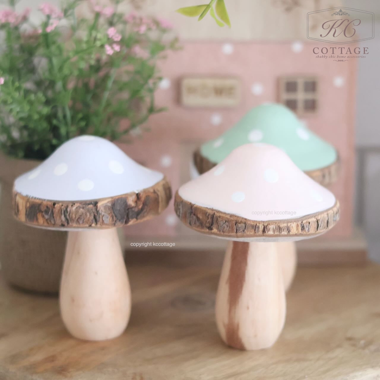Beautiful pastel coloured wooden polkadot toadstools! These pretty toadstools are perfect for that spring display! Added a lovely pastel pop of colour to your home decor! Choose between our purple, pink and green shades to suit your style!