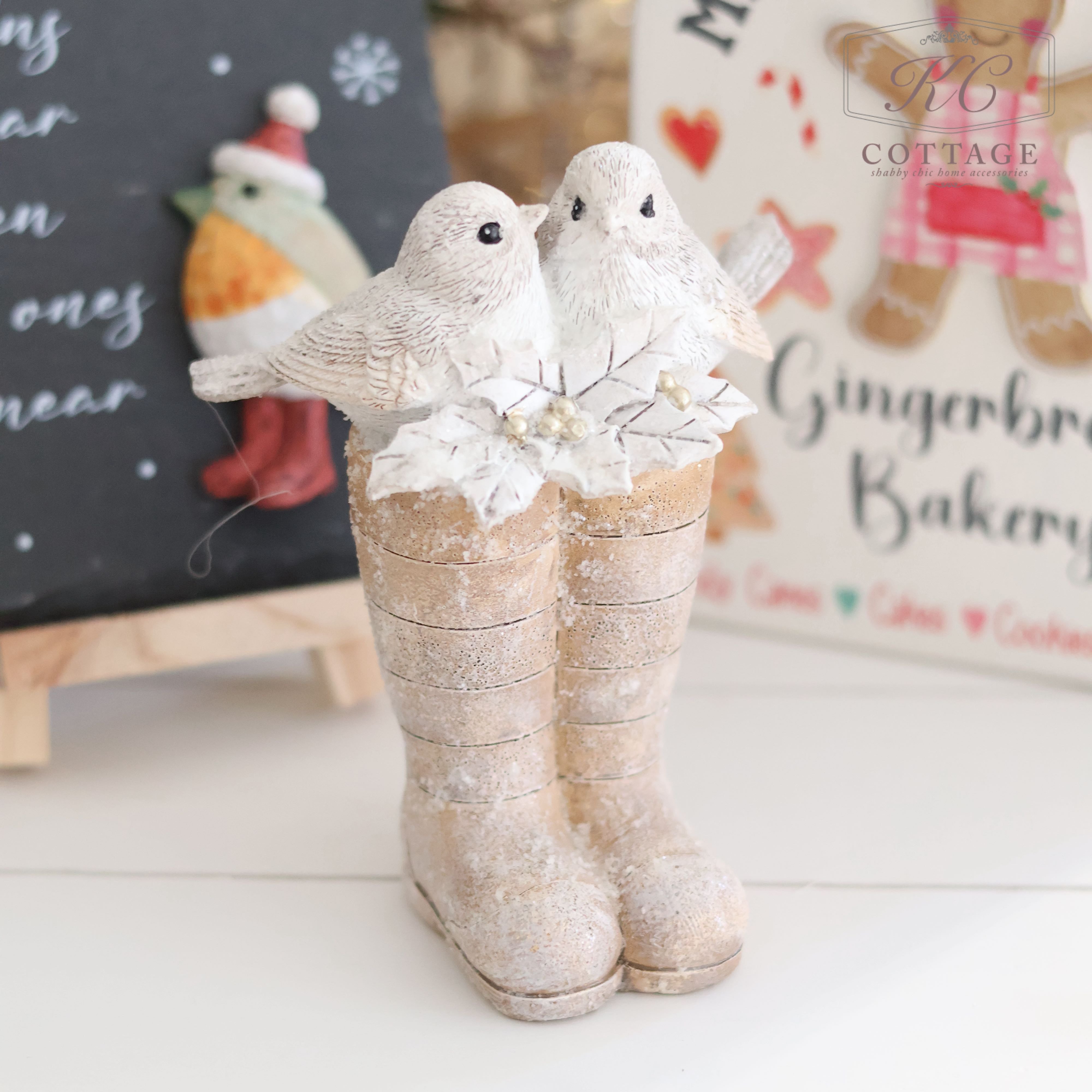 Transform your holiday decor into a winter wonderland with our Christmas Birds Sitting On Wellies Ornament! Made of natural polyresin, this charming ornament features adorable birds perched on wellies, adding a playful and festive touch to any space. Bring the joy and warmth of the season indoors with this delightful decoration.